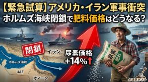 【緊急試算】アメリカ・イラン軍事衝突で尿素+14%|ホルムズ海峡閉鎖で肥料価格はどうなる?