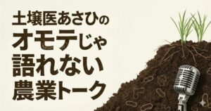 この記事のもとになったPodcastエピソードでは、より実践的な事例や、メーカー担当者から聞いた裏話も語っています。通勤中やトラクター作業中に聞きたい方は、Podcast『土壌医あさひのオモテじゃ語れない農業トーク』もぜひチェックしてください。